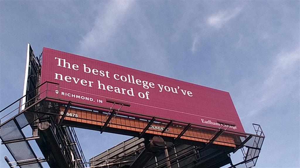 Here, you can see an example of how I worked with Earlham College to use humor to create a message that would stick in the audience’s mind. Website impressions from regions where these billboards were located increased significantly for the college.