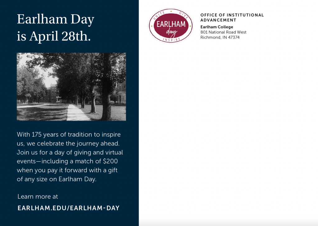 And on Earlham Day, our worldwide community comes together to pay it forward.